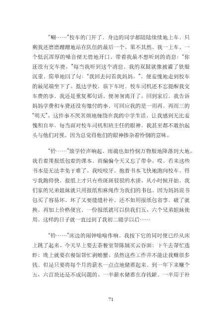 愧和⾃卑,每当⾯对校车司机和班主任的眼神,我甚⾄都不敢抬起