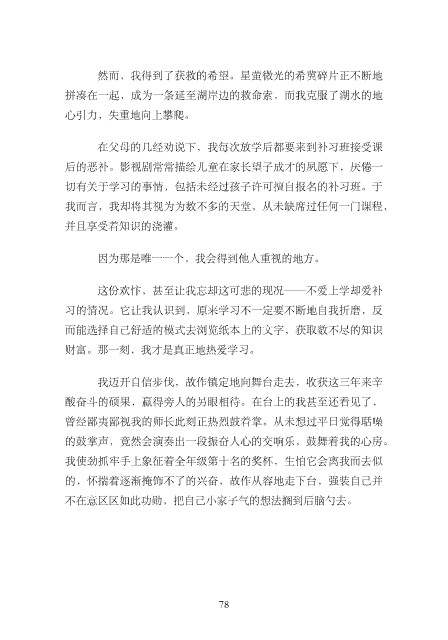 习的情况。它让我认识到,原来学习不⼀定要不断地⾃我折磨,反