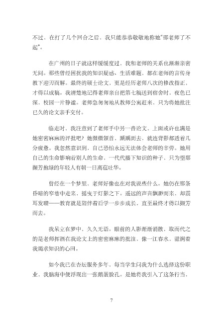 的是⽼师挥洒在我论⽂上的密密⿇⿇的批注,像⼀江春⽔,滋润着