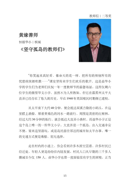 这个岛上唯⼀的⼀所华⽂⼩学。⼤直弄是⼀个孤岛,出⼊交通⾮常