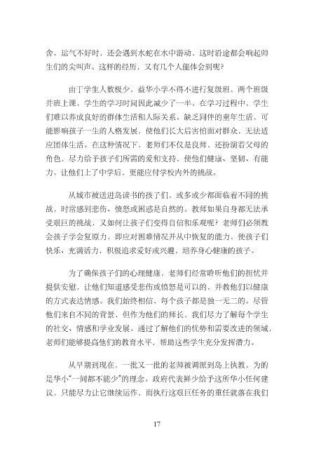 从早期到现在,⼀批又⼀批的⽼师被调派到岛上执教,为的
