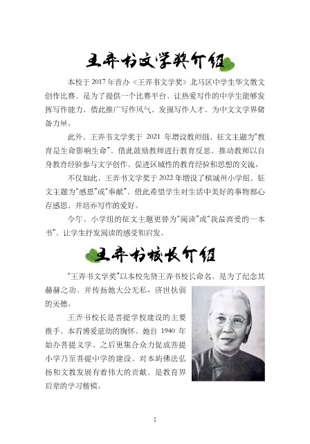 此外,王弄书⽂学奖于 2021 年增设教师组,征⽂主题为“教